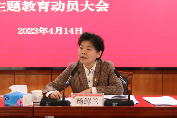 杨鲜兰在动员讲话中指出,开展主题教育是推动落实党的二十大精神的内在要求,是强化党的创新理论武装、统一全党思想意志行动的必然要求,是增强斗争精神、推动学校事业发展的必然要求。全校各级党组织和广大党员干部要深刻理解、全面把握、主动作为,将开展主题教育作为当前和今后一段时间内的重大政治任务抓紧抓实。一是要深刻理解开展学习贯彻习近平新时代中国特色社会主义思想主题教育的重大意义。二是要牢牢把握学习贯彻习近平新时代中国特色社会主义思想主题教育的总体要求和目标任务。三是要不折不扣推动主题教育各项重点措施走深走实、落地落细。四是要加强组织领导、以严实作风确保主题教育取得扎实成效。她强调,作为全省主题教育第一批开展单位,全校上下将坚决贯彻落实省委工作部署,始终坚持巡回指导正确方向,牢牢把握“学思想、强党性、重实践、建新功”的总要求,深入开展主题教育,以实绩实效推动学校高质量发展,以实绩实效为全面建设教育强省以及构建新发展格局先行区做出二师人的积极贡献。