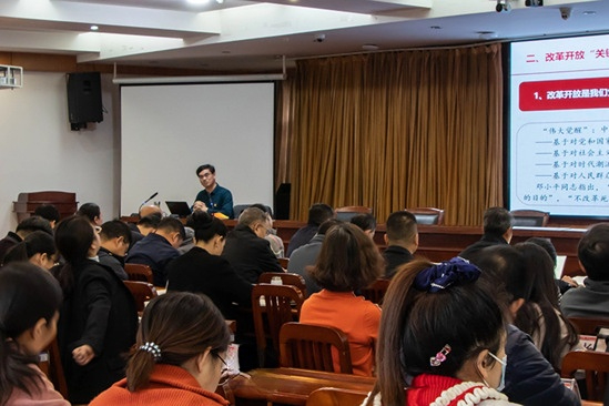 本网讯(学通社见习记者 徐瑞麟 韦槿怡)11月19日上午,机关党委学习贯彻党的二十届三中全会精神校级宣讲团报告会在行政楼五号会议室举行。会议邀请学校党的二十届三中全会精神校级宣讲团成员、马克思主义学院院长黄红发教授作专题辅导,机关党委书记王青主持,机关党委全体成员参加。