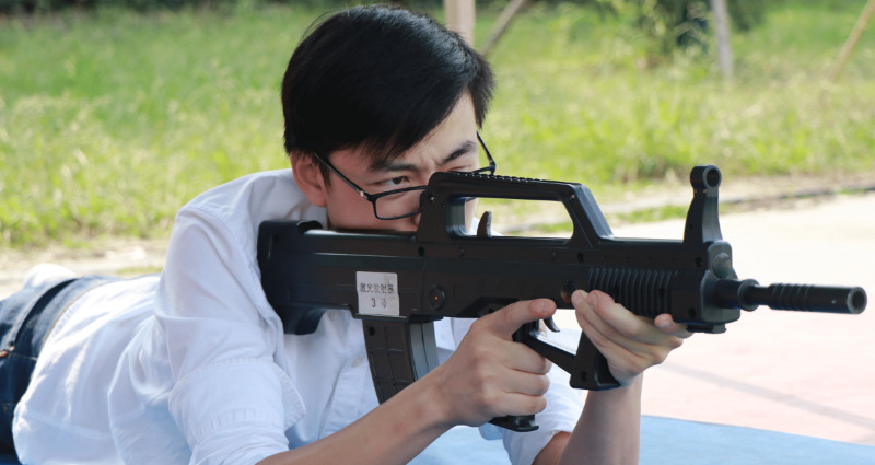 2020级中国语言文学类专业学生尤山水在模拟射击的过程中取得9.7环的好成绩。“今年没有开展军训,但是我们还是能够接触到军用器械,学到了基本的射击知识。”打靶归来,每名学生都按捺不住内心的激动与他人分享自己的射击感受。“退伍回来之后,我对部队仍然有着深深的情怀。打靶模拟演练非常有意义,我就赶紧参加了。”2018级土木工程专业学生王智说。